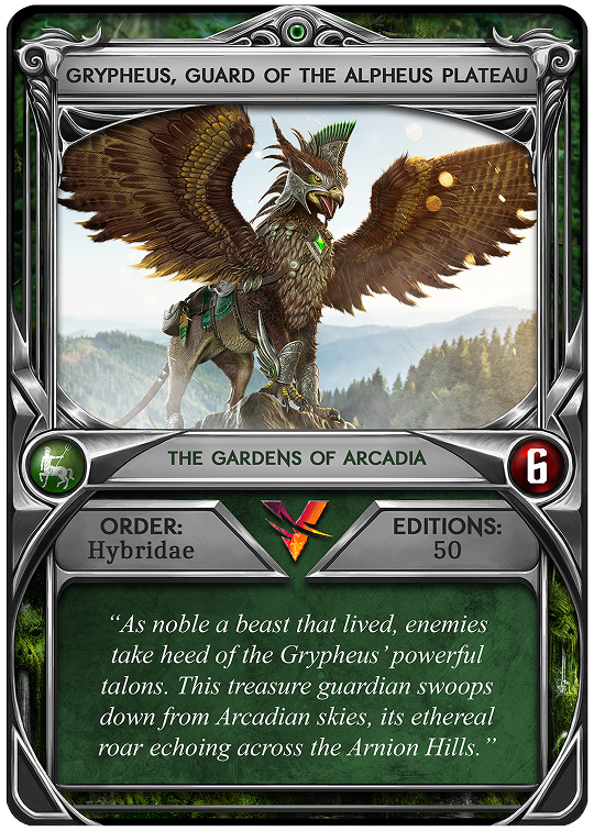 As noble a beast that lived, enemies take heed of Grypheus powerful talons. This treasure guardian swoops down from Arcadian skies, its ethereal roar echoing across the Arnion Hills.